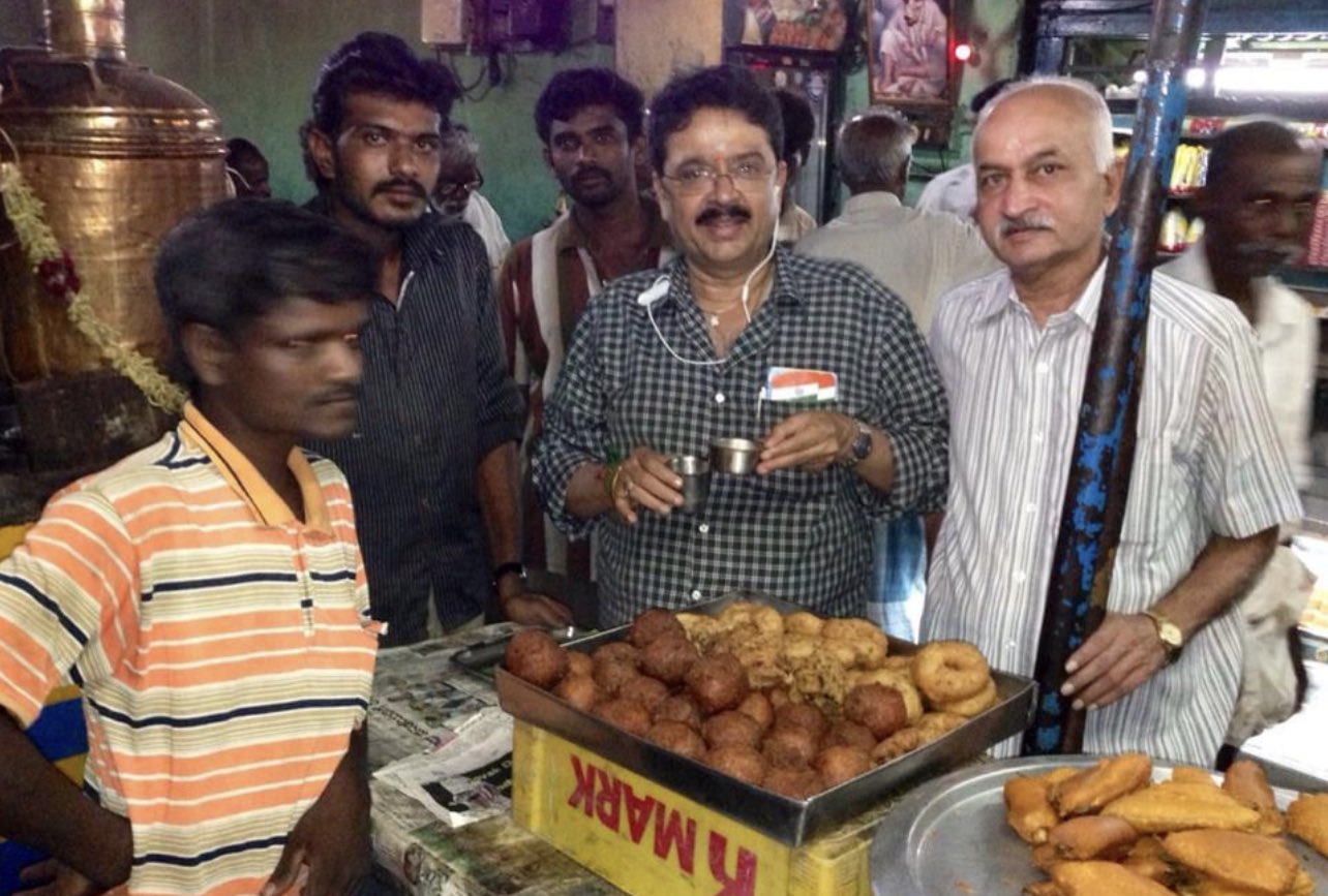 வெளியில் வந்து சாதாரண டீக்கடையில் டீ அருந்தும் காட்சிகளை எஸ்.வி சேகர் பகிர்ந்துள்ளார்.